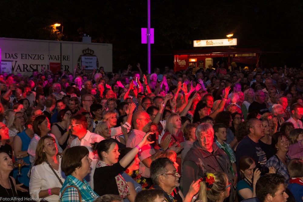 2000Besucher warenzum öhner Opeanir auf das Openairgeländevom otel Landsknecht gekommen und feieren denSieg der Fußballnationalmanschaft über Frakreich im Viertelfinal der WM. Das Blasorchester Uckerath eröffnete das Event um 19 Uhr, Bella Vista brachte die Menge ab 19:30 Uhr mit ihren Partyliedern in Stimmung, sodass es die Höhner dann um 20:30 Uhr leicht hatten, die Stimmung noch weiter anzuheizen.