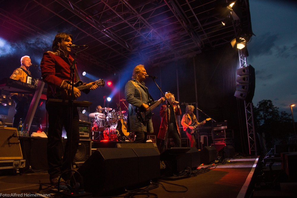 2000Besucher warenzum öhner Opeanir auf das Openairgeländevom otel Landsknecht gekommen und feieren denSieg der Fußballnationalmanschaft über Frakreich im Viertelfinal der WM. Das Blasorchester Uckerath eröffnete das Event um 19 Uhr, Bella Vista brachte die Menge ab 19:30 Uhr mit ihren Partyliedern in Stimmung, sodass es die Höhner dann um 20:30 Uhr leicht hatten, die Stimmung noch weiter anzuheizen.