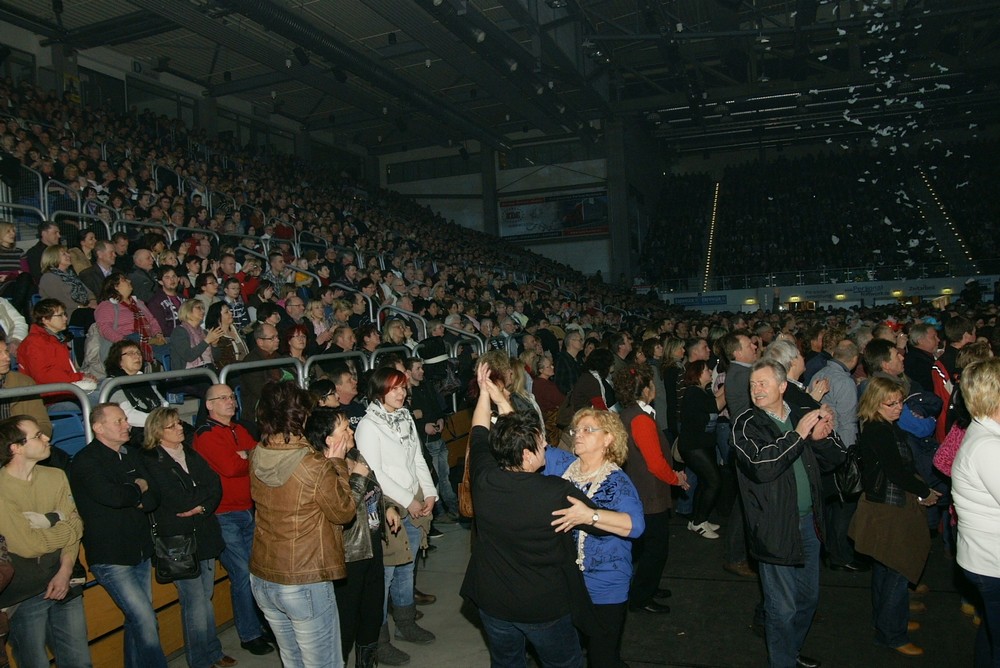 Konzert Bamberg Konzert Bamberg In der Arena Bamberg waren über 8000 Franken zur Abenteuershow gekommen, auch hier war die Halle ausverkauft, trotz Außentemperaturen von Minus 16°. Andrea konnte nicht fliegen, da die Technik dafür ausgefallen war. |
