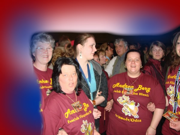 Konzert Rostock Konzert Rostock Das Konzert in Rostock zog am 19.4.2008, 5000 Besucher in die Stadthalle. Vor dem Konzert war im nahegelegenem City Hotel das erste Fanclubtreffen der Fliegenden Hirschen mit Andrea Berg. |