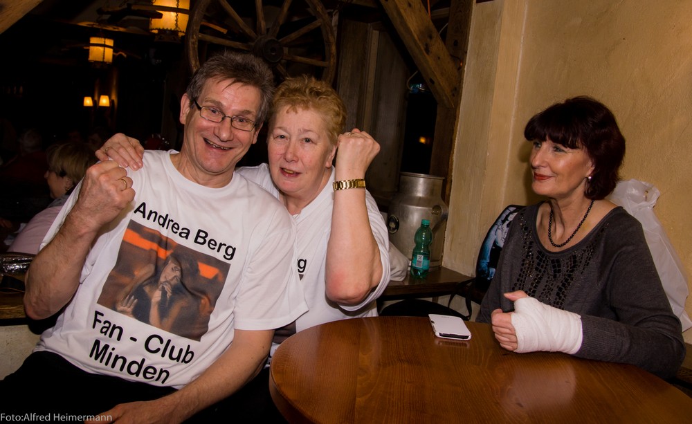 Konzert Sonnehof/Fanclubleitertreffen Sonnenhor-Aspach 1. Konzert von Andrea Berg Jahr 2014 , am 4. Januar, bei sich zu Hause im Sonnenhof in der ausverkaufter Hazienda. Am 5.-6. Januar waren die Fanclubleiter mit ihren Vertrtern von Andrea für 2 Tage in den Sonnenhof eingeladen und verwöhnte die über 30 angereisten Vertreter der Fanclubs. |