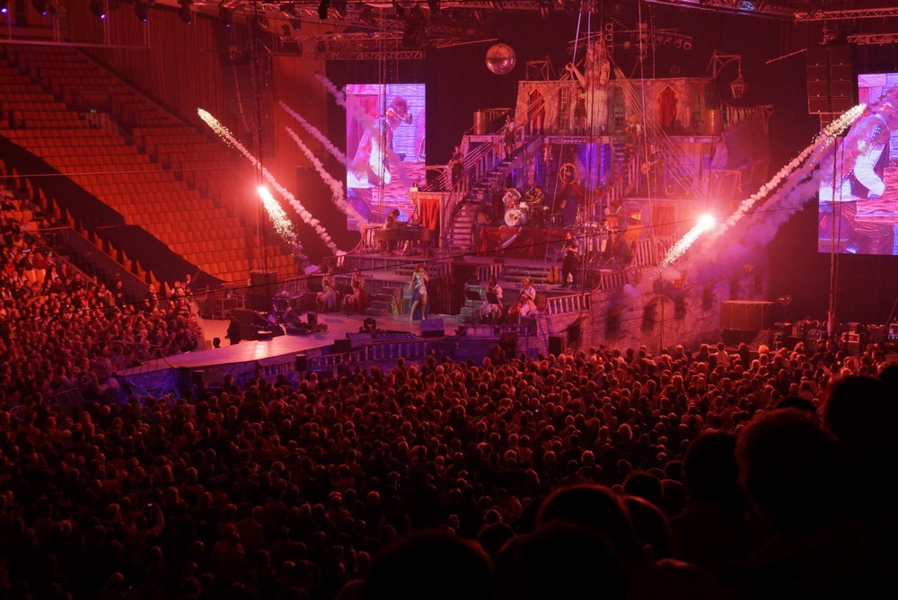 Konzert in Schwerin2012 Piratenschiff in Schwerin Zum 10. Konzert von Andrea waren wieder viele Fans gekommen und so war die Sporthalle auch diesmal wieder voll mit über 8000 Menschen. Vor Jahren war das Konzert in Schwerin eines der größten von Andrea, heute ist es eher eine kleineren Hallen, wo Andrea auftritt. |
