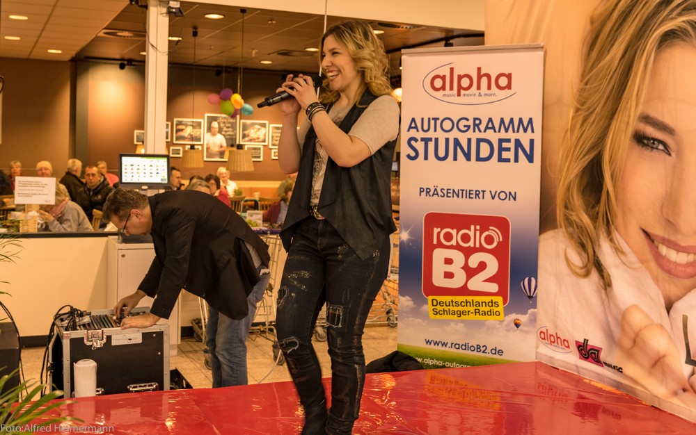 Laura Wilde, Autogrammstunde in Moers Real Markt Moers 3.2.2018 Nach 30 Terminen der Alpha Autogrammstunden Tour zum neuen Album von Laura Wilde, fand heute die letzte im Real Center von Moers statt. Laura sang einige Lieder aus ihrem dem Top Album der Verkauscharts (Platz 18) und stand danach, gut gelaunt für Autogrammwünsche zur Verfügung. Es war schön, die sympatische Sängerin mal wieder zu sehen. |