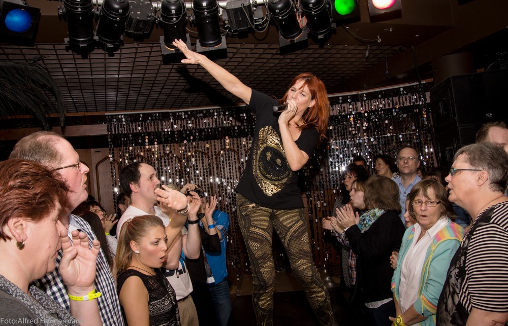 Neujahrskonzert Andrea Berg Sonnenhof Andrea wünschte allen Gästen ihres Neujahrskonzertes am 4.1.2015 in der Hazienda ein gutes neues Jahr. Trotz leichter Erköltung wieder ein schönes Konzert, was auch ihre Mutter erlebte, die dann nach Mitternacht ihren Geburtstag feierte, darum gib es bei der Autogrammstunde etwas schneller. Die restlichen Fankalender 2015 gingen alle weg |