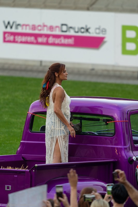 Openair Andrea Berg Aspach Das besondere Heimspiel, 17. Juli Wieder durften 2000 Fans Andrea auf der Bühne im Stadion der "Wir machen Druck" Arena bei sommerlichen Temperaturen feiern und für zwei Stunden den Alltag vergessen und trotzdem waren die Gedanken bei den Opfern der Flutkatastrophe, auch bei Andrea. |
