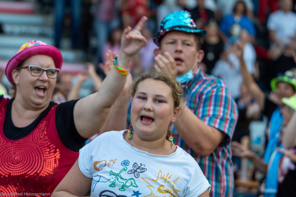 Openair Andrea Berg Aspach Das besondere Heimspiel, 17. Juli Wieder durften 2000 Fans Andrea auf der Bühne im Stadion der "Wir machen Druck" Arena bei sommerlichen Temperaturen feiern und für zwei Stunden den Alltag vergessen und trotzdem waren die Gedanken bei den Opfern der Flutkatastrophe, auch bei Andrea. |