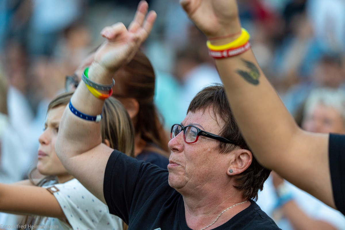 Openair Andrea Berg Aspach Das besondere Heimspiel, 17. Juli Wieder durften 2000 Fans Andrea auf der Bühne im Stadion der "Wir machen Druck" Arena bei sommerlichen Temperaturen feiern und für zwei Stunden den Alltag vergessen und trotzdem waren die Gedanken bei den Opfern der Flutkatastrophe, auch bei Andrea. |