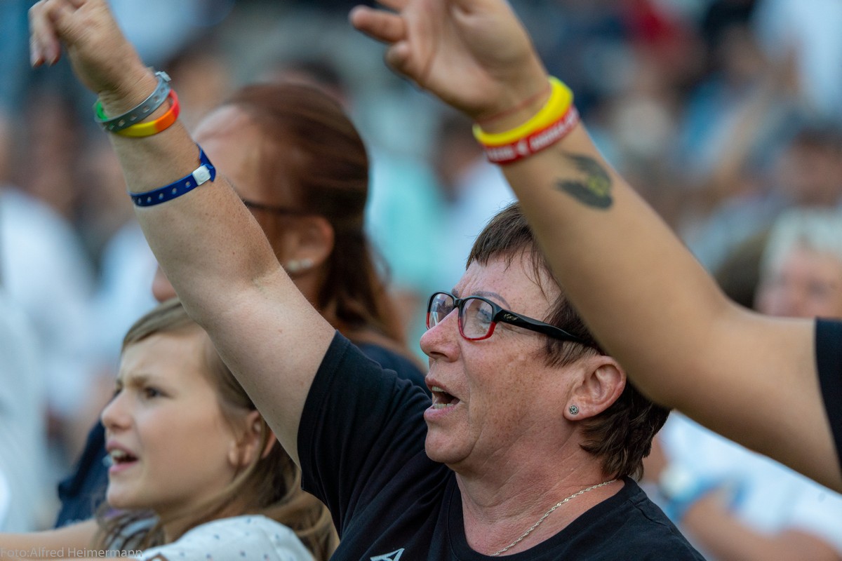 Openair Andrea Berg Aspach Das besondere Heimspiel, 17. Juli Wieder durften 2000 Fans Andrea auf der Bühne im Stadion der "Wir machen Druck" Arena bei sommerlichen Temperaturen feiern und für zwei Stunden den Alltag vergessen und trotzdem waren die Gedanken bei den Opfern der Flutkatastrophe, auch bei Andrea. |