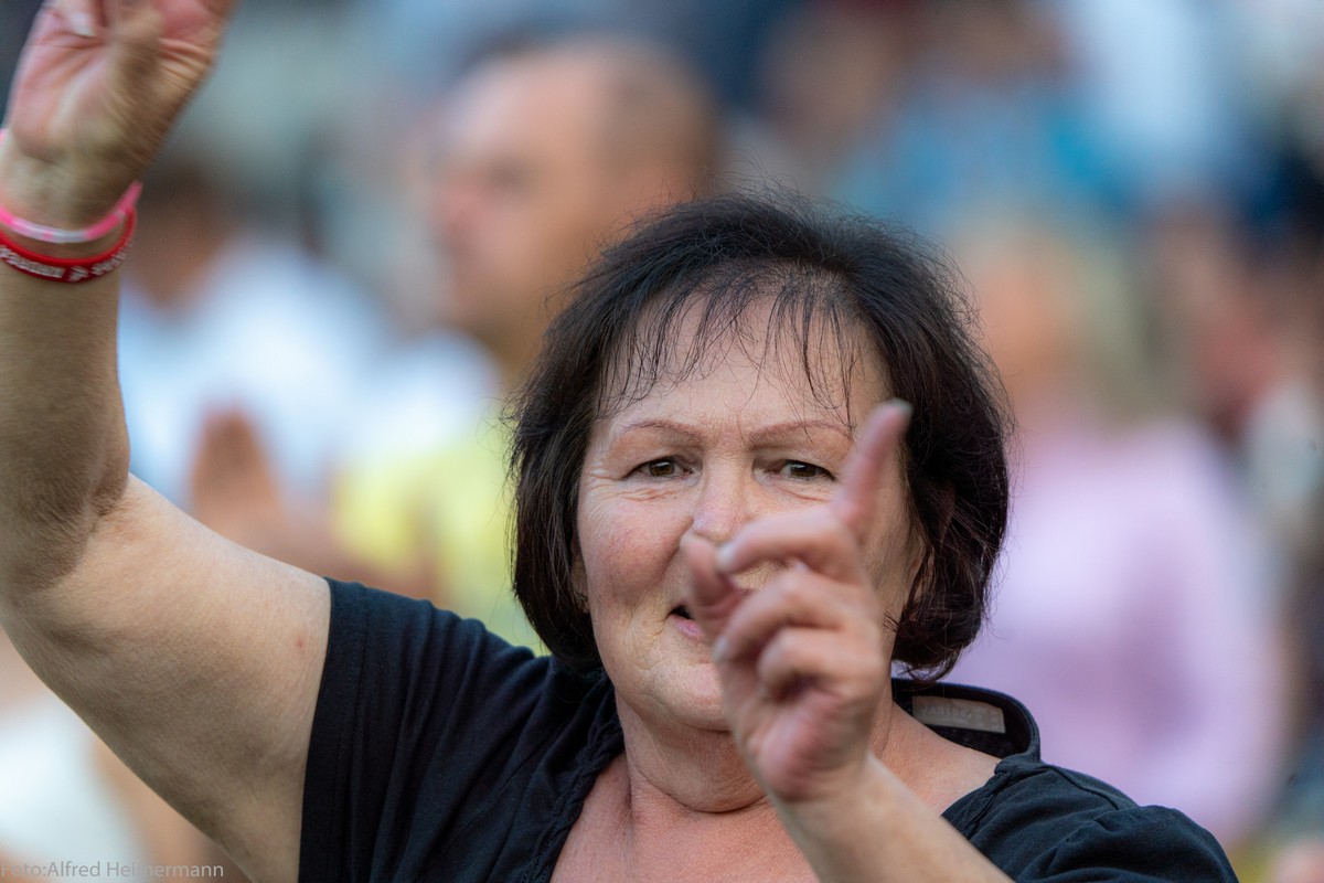 Openair Andrea Berg Aspach Das besondere Heimspiel, 17. Juli Wieder durften 2000 Fans Andrea auf der Bühne im Stadion der "Wir machen Druck" Arena bei sommerlichen Temperaturen feiern und für zwei Stunden den Alltag vergessen und trotzdem waren die Gedanken bei den Opfern der Flutkatastrophe, auch bei Andrea. |