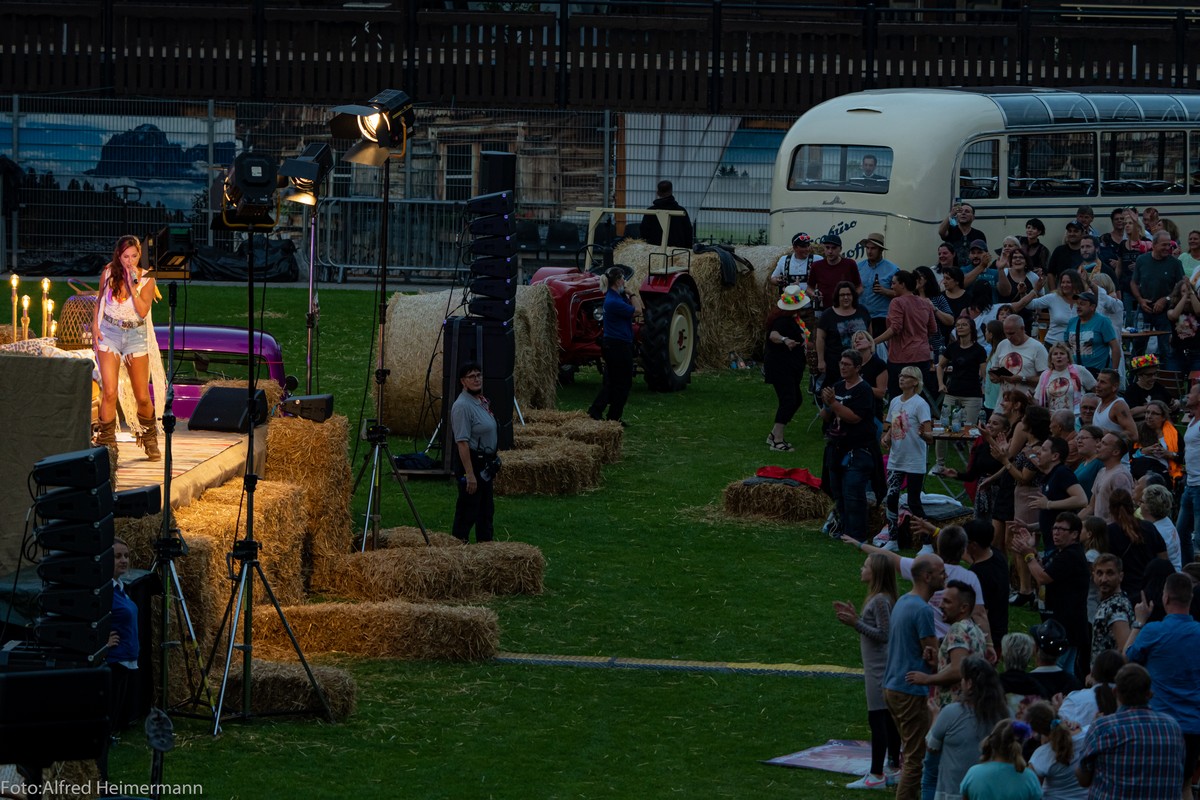 Openair Andrea Berg Aspach Das besondere Heimspiel, 17. Juli Wieder durften 2000 Fans Andrea auf der Bühne im Stadion der "Wir machen Druck" Arena bei sommerlichen Temperaturen feiern und für zwei Stunden den Alltag vergessen und trotzdem waren die Gedanken bei den Opfern der Flutkatastrophe, auch bei Andrea. |