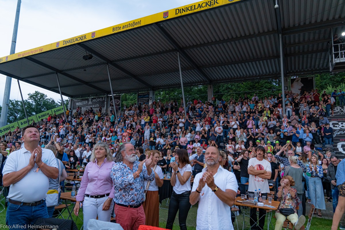 Openair Andrea Berg Aspach Das besondere Heimspiel, 17. Juli Wieder durften 2000 Fans Andrea auf der Bühne im Stadion der "Wir machen Druck" Arena bei sommerlichen Temperaturen feiern und für zwei Stunden den Alltag vergessen und trotzdem waren die Gedanken bei den Opfern der Flutkatastrophe, auch bei Andrea. |