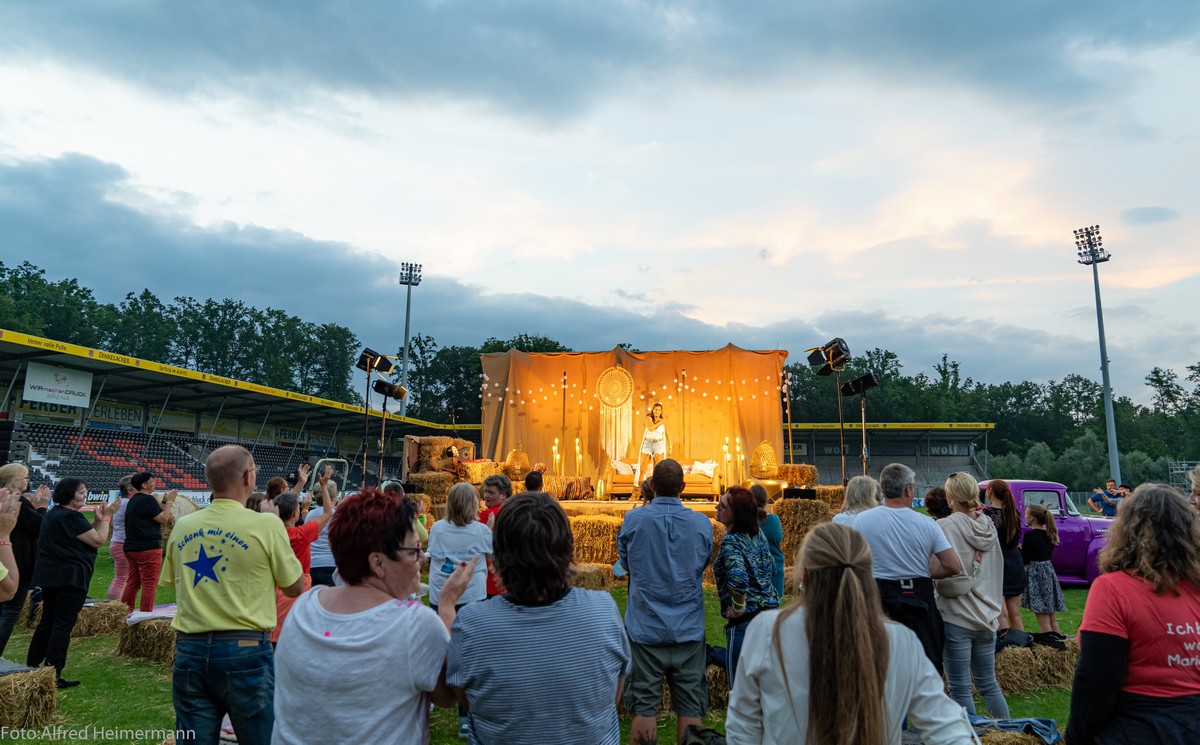 Openair Andrea Berg Aspach Das besondere Heimspiel, 17. Juli Wieder durften 2000 Fans Andrea auf der Bühne im Stadion der "Wir machen Druck" Arena bei sommerlichen Temperaturen feiern und für zwei Stunden den Alltag vergessen und trotzdem waren die Gedanken bei den Opfern der Flutkatastrophe, auch bei Andrea. |