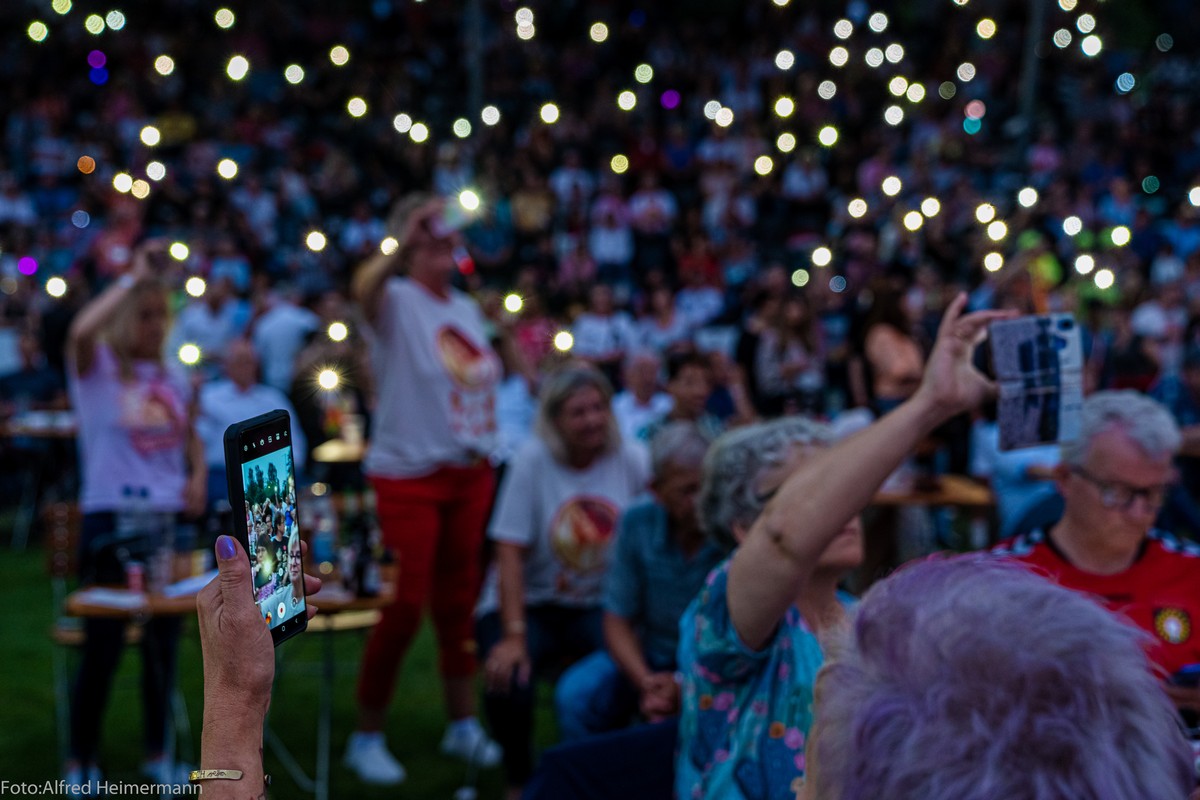 Openair Andrea Berg Aspach Das besondere Heimspiel, 17. Juli Wieder durften 2000 Fans Andrea auf der Bühne im Stadion der "Wir machen Druck" Arena bei sommerlichen Temperaturen feiern und für zwei Stunden den Alltag vergessen und trotzdem waren die Gedanken bei den Opfern der Flutkatastrophe, auch bei Andrea. |