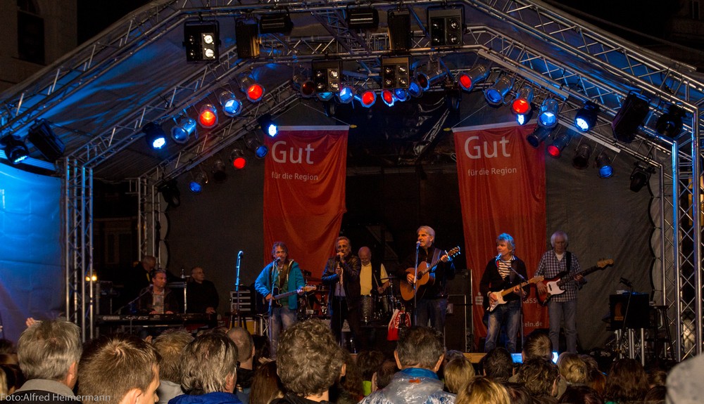 Openair Siegburg mit den Bläck Fööss 950 Jahre Siegburg 4500 Besucher waren trotz Dauerregen auf den Siegburger Markplatz gekommen und 950 Jahre Siegburg bei einem Bläck Fööss Openair zu feiern. Als die Fööss auf die Bühne kamen, hörte der Regen auf. |