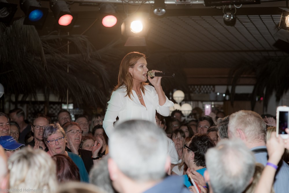 900 Fans von Andrea waren in die Hazienda gekommen und erlebten ein tolles Wunschkonzert, denn man durfte sich Lieder wünschen, die Andrea dann sang. Es soll in diesem Jahr ein Best off Album mit den beliebtesten Songs der Fans anlässlich des 25. Jubiläum von Andrea Berg herauskommen. Nachdem Konzert erhielt Andrea von den Hardcorefans, Reiner, Frank und Daggy einen Drachen "Spinnst du" aus Holz geschnitzt geschenkt. Ich durfte den vor einer Woche verliehenen Echo in Händen halten...ganzschön schwer das Ding.