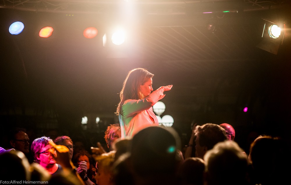 900 Fans von Andrea waren in die Hazienda gekommen und erlebten ein tolles Wunschkonzert, denn man durfte sich Lieder wünschen, die Andrea dann sang. Es soll in diesem Jahr ein Best off Album mit den beliebtesten Songs der Fans anlässlich des 25. Jubiläum von Andrea Berg herauskommen. Nachdem Konzert erhielt Andrea von den Hardcorefans, Reiner, Frank und Daggy einen Drachen "Spinnst du" aus Holz geschnitzt geschenkt. Ich durfte den vor einer Woche verliehenen Echo in Händen halten...ganzschön schwer das Ding.