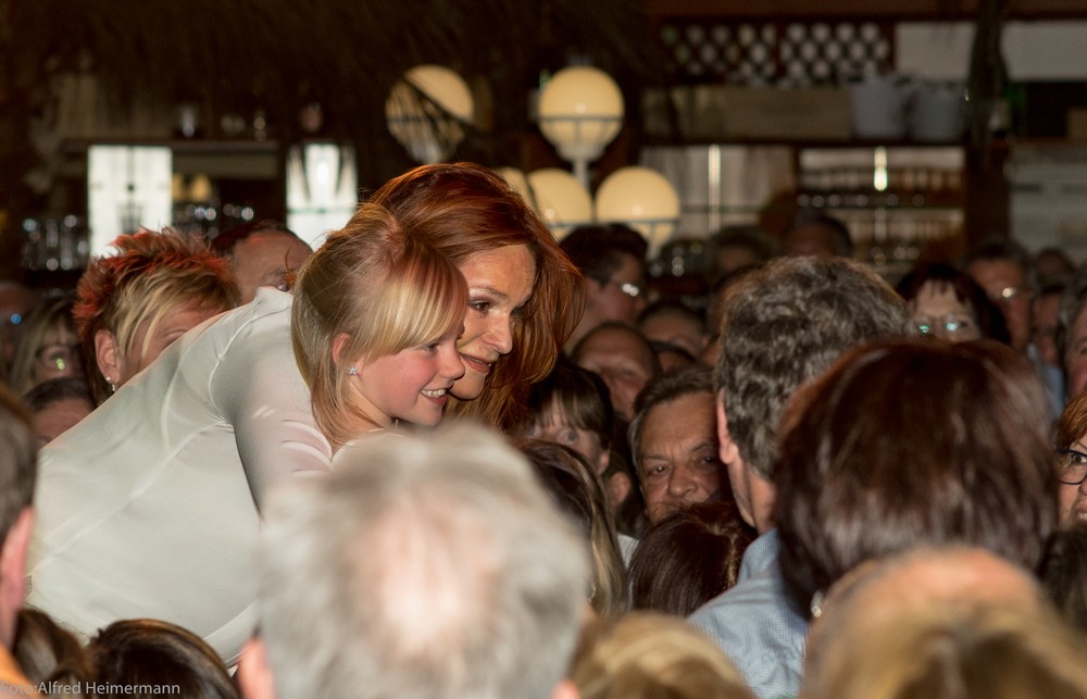900 Fans von Andrea waren in die Hazienda gekommen und erlebten ein tolles Wunschkonzert, denn man durfte sich Lieder wünschen, die Andrea dann sang. Es soll in diesem Jahr ein Best off Album mit den beliebtesten Songs der Fans anlässlich des 25. Jubiläum von Andrea Berg herauskommen. Nachdem Konzert erhielt Andrea von den Hardcorefans, Reiner, Frank und Daggy einen Drachen "Spinnst du" aus Holz geschnitzt geschenkt. Ich durfte den vor einer Woche verliehenen Echo in Händen halten...ganzschön schwer das Ding.