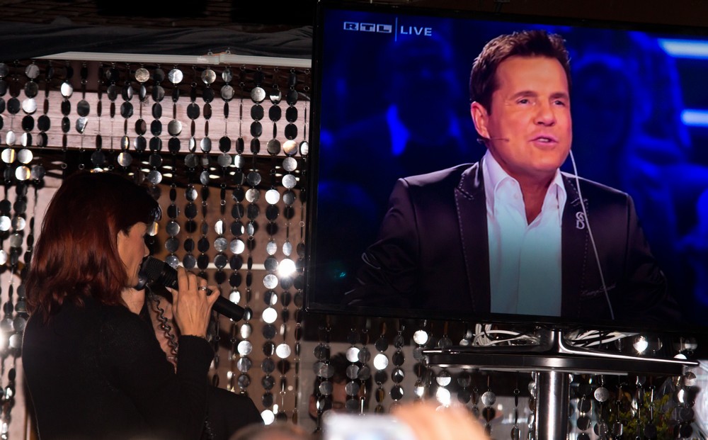 Osterkonzert Sonnenhof2013 Kleinaspach Volles Haus beim Osterkonzert von Andrea in der Hazienda, diesmal mit Liveschaltung zur RTL-Sendung DSDS, wo Beatric das Lied von Andrea sang "1000 x belogen..." |