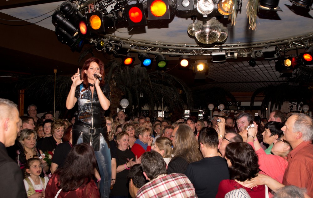 Osterkonzert Sonnenhof2013 Kleinaspach Volles Haus beim Osterkonzert von Andrea in der Hazienda, diesmal mit Liveschaltung zur RTL-Sendung DSDS, wo Beatric das Lied von Andrea sang "1000 x belogen..." |