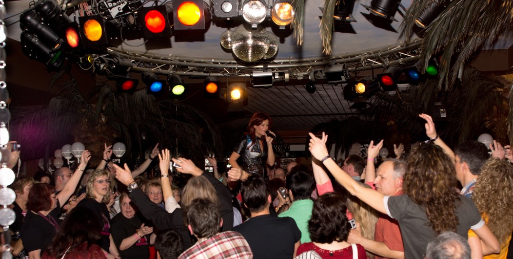 Osterkonzert Sonnenhof2013 Kleinaspach Volles Haus beim Osterkonzert von Andrea in der Hazienda, diesmal mit Liveschaltung zur RTL-Sendung DSDS, wo Beatric das Lied von Andrea sang "1000 x belogen..." |