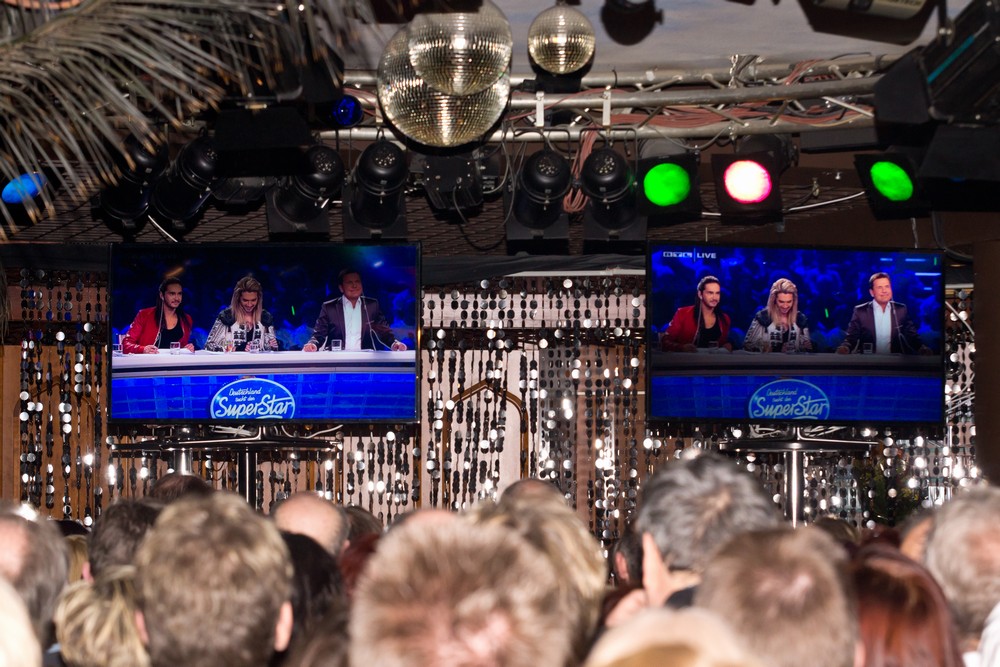 Osterkonzert Sonnenhof2013 Kleinaspach Volles Haus beim Osterkonzert von Andrea in der Hazienda, diesmal mit Liveschaltung zur RTL-Sendung DSDS, wo Beatric das Lied von Andrea sang "1000 x belogen..." |