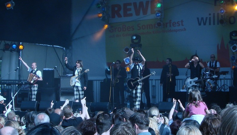 Rewe Sommerfest Köln Rewe Sommerfest Köln 80 000Menschen beim Rewe Sommerfest auf der Pferderennbahn in Köln am 16.5.2009. Auf der Bühne präsentierte Guido Cantz viele Künstler aus allen Musikrichtungen, so z.B. Fernando Express und Brings. |
