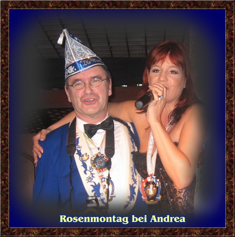 Rosnemontagskonzert Sonnenhof Rosenmontag im Sonnenhof 23.2.2009...mein 100. Konzert von Andrea Berg, es war schön und Andrea holte mich auf die Bühne, um zu zeigen, wie ein "Kölsche Jeck" aussieht, denn ich war vom Uckerather Rosenmontagszug direkt zum Sonnenhof gefahren, begleitet von zwei weiteren Uckerather Jecken. Mein 1. Duett mit Andrea mit dem Lied "Emol Prinz zu sin, in Kölle am Ring" Et wor schön! |