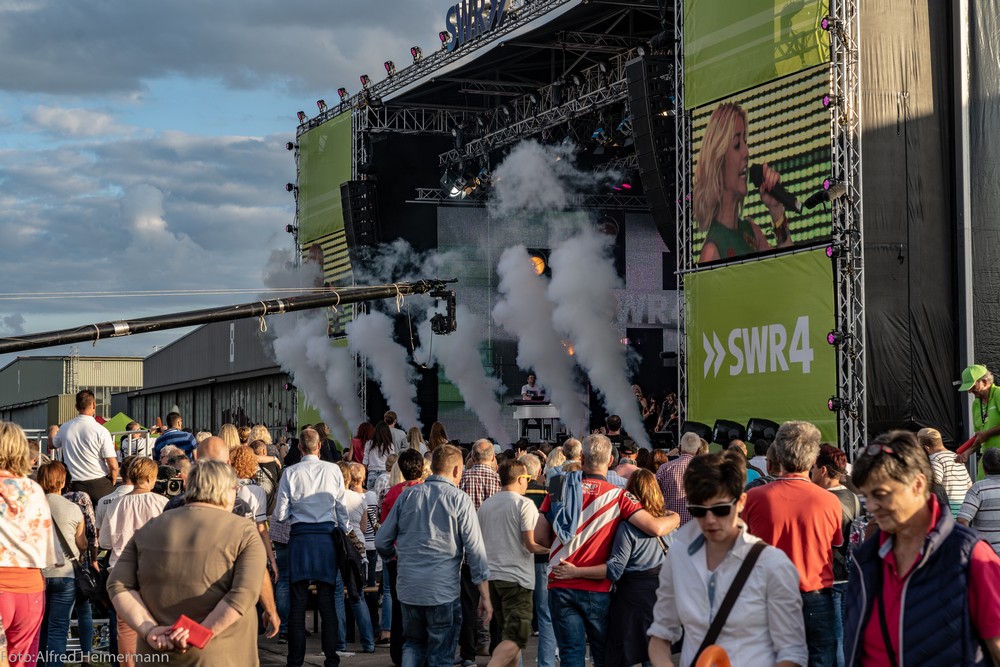 SWR4 Schlageropenair in Mendig 2018 15.Juni 2018 Flugplatz Mendig In der Eifel kann nicht nur Motorsport Menschen anziehen, sondern auch die Schlagerfreunde. 6000 Besucher beim SWR4 Schlageropenair auf dem Flugplatz Mendig ist schon was. Es war ein toll organisiertes Event und die Sängerinnen und Sänger brachte klasse Stimmung auf den Platz und es war ein fest für junge und ältere Menschen, alle Generationen waren vertreten, was zeigt, der Schlager lebt. Bei den kleinen Gästen war Vanessa May der Star und besonders umschwärmt. |