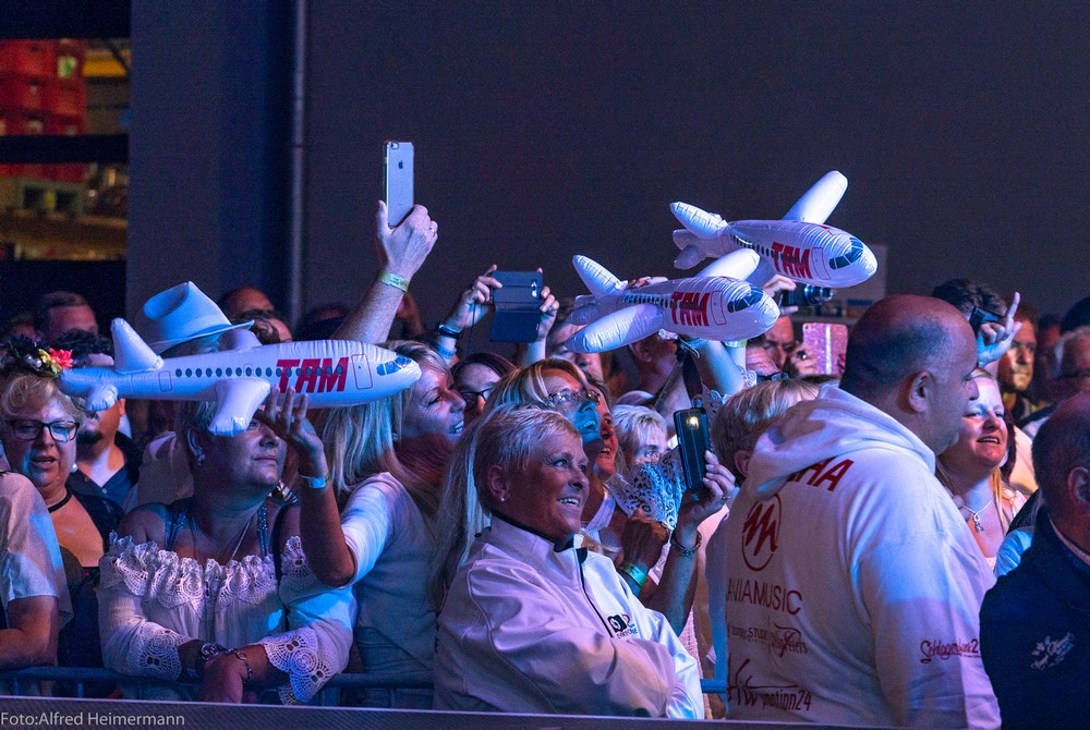 Schlager in Weiss in Döckingen 4. Schlagerfestival 2018 4000 Schlagerfans aus ganz Deutschland feierten ein Festival der Superlative mit vielen Künstlern. Das Programm am Samstag startete um 13 Uhr und endete 12 Stunden später. Ein toll organisiertes Event, was Stefan Peters und sein Team da zussammen gestellt haben. |