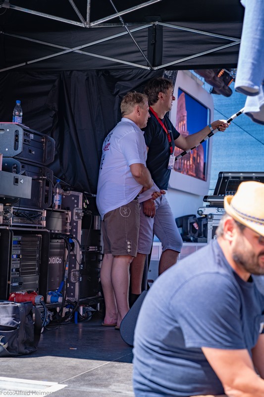 Zum Frühschoppen am Tag nachdem Schlager in Weiss kamen wieder ca.1500 Partyfreunde zum musikalischen Frühschoppen. Ochs am Spieß mit Knödel und Blaukraut war der Hit aus dem Catering von Stadelmann, aber auch gegrillte Ente war im Angebot. 15 Künstler traten in der Zeit von 13-17 Uhr auf, diesmal mit dem Scxhwerpunkt von Alpenrock. Es war ein schöner Tag!