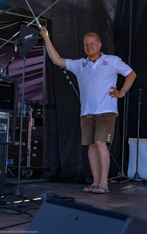 Zum Frühschoppen am Tag nachdem Schlager in Weiss kamen wieder ca.1500 Partyfreunde zum musikalischen Frühschoppen. Ochs am Spieß mit Knödel und Blaukraut war der Hit aus dem Catering von Stadelmann, aber auch gegrillte Ente war im Angebot. 15 Künstler traten in der Zeit von 13-17 Uhr auf, diesmal mit dem Scxhwerpunkt von Alpenrock. Es war ein schöner Tag!