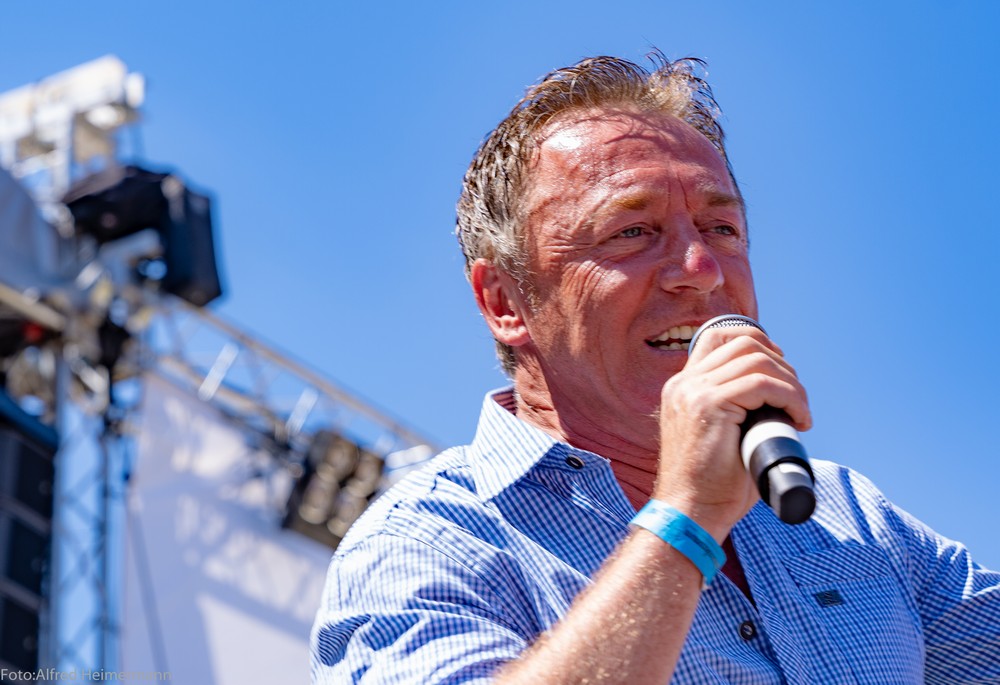 Zum Frühschoppen am Tag nachdem Schlager in Weiss kamen wieder ca.1500 Partyfreunde zum musikalischen Frühschoppen. Ochs am Spieß mit Knödel und Blaukraut war der Hit aus dem Catering von Stadelmann, aber auch gegrillte Ente war im Angebot. 15 Künstler traten in der Zeit von 13-17 Uhr auf, diesmal mit dem Scxhwerpunkt von Alpenrock. Es war ein schöner Tag!