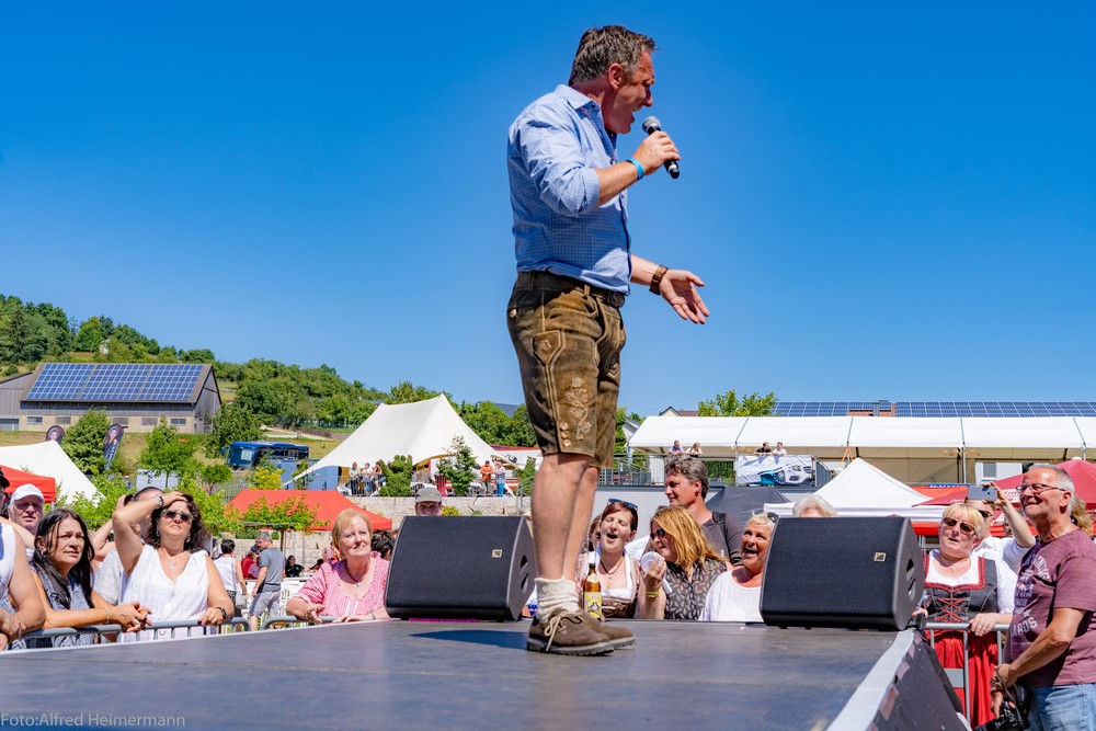 Zum Frühschoppen am Tag nachdem Schlager in Weiss kamen wieder ca.1500 Partyfreunde zum musikalischen Frühschoppen. Ochs am Spieß mit Knödel und Blaukraut war der Hit aus dem Catering von Stadelmann, aber auch gegrillte Ente war im Angebot. 15 Künstler traten in der Zeit von 13-17 Uhr auf, diesmal mit dem Scxhwerpunkt von Alpenrock. Es war ein schöner Tag!