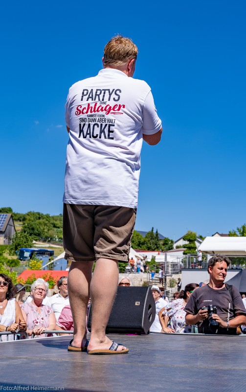 Zum Frühschoppen am Tag nachdem Schlager in Weiss kamen wieder ca.1500 Partyfreunde zum musikalischen Frühschoppen. Ochs am Spieß mit Knödel und Blaukraut war der Hit aus dem Catering von Stadelmann, aber auch gegrillte Ente war im Angebot. 15 Künstler traten in der Zeit von 13-17 Uhr auf, diesmal mit dem Scxhwerpunkt von Alpenrock. Es war ein schöner Tag!