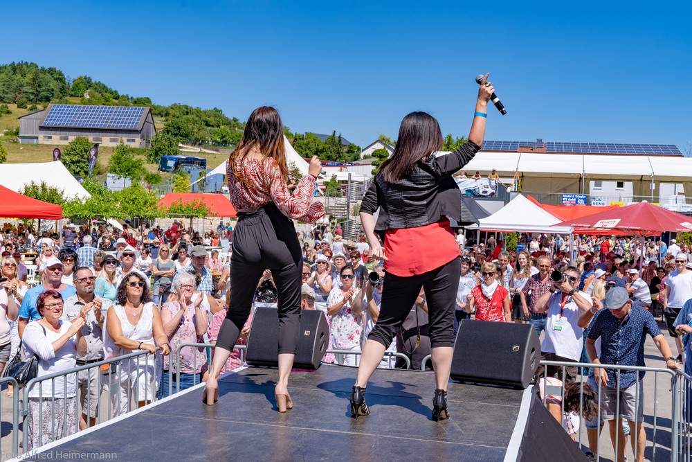 Zum Frühschoppen am Tag nachdem Schlager in Weiss kamen wieder ca.1500 Partyfreunde zum musikalischen Frühschoppen. Ochs am Spieß mit Knödel und Blaukraut war der Hit aus dem Catering von Stadelmann, aber auch gegrillte Ente war im Angebot. 15 Künstler traten in der Zeit von 13-17 Uhr auf, diesmal mit dem Scxhwerpunkt von Alpenrock. Es war ein schöner Tag!