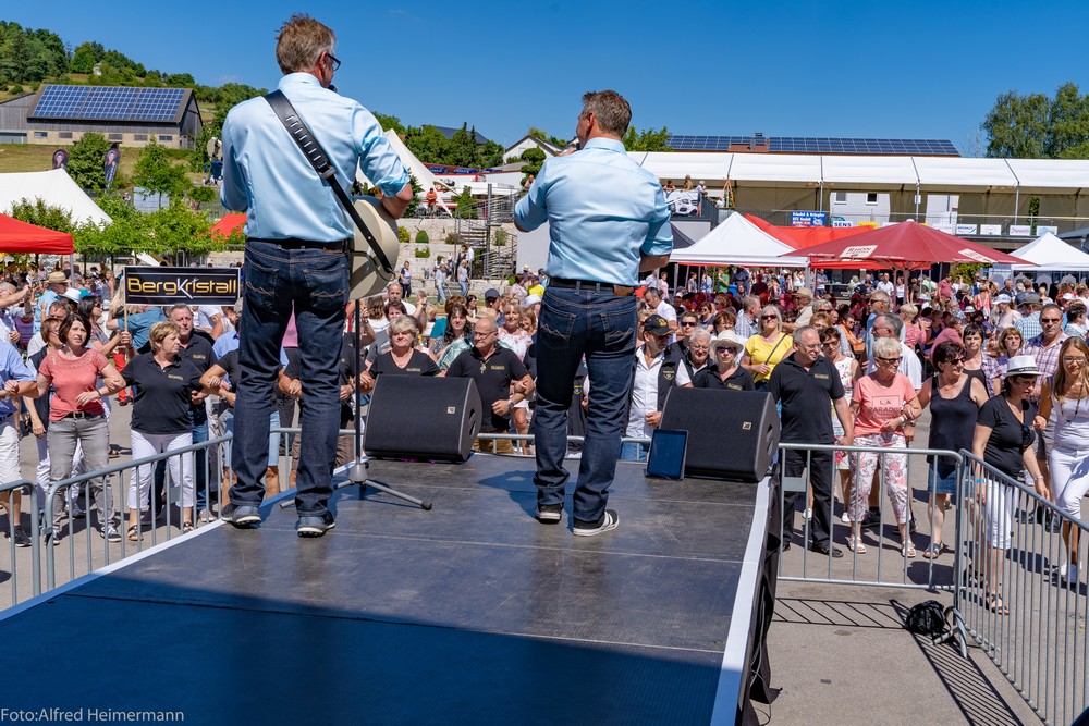 Zum Frühschoppen am Tag nachdem Schlager in Weiss kamen wieder ca.1500 Partyfreunde zum musikalischen Frühschoppen. Ochs am Spieß mit Knödel und Blaukraut war der Hit aus dem Catering von Stadelmann, aber auch gegrillte Ente war im Angebot. 15 Künstler traten in der Zeit von 13-17 Uhr auf, diesmal mit dem Scxhwerpunkt von Alpenrock. Es war ein schöner Tag!