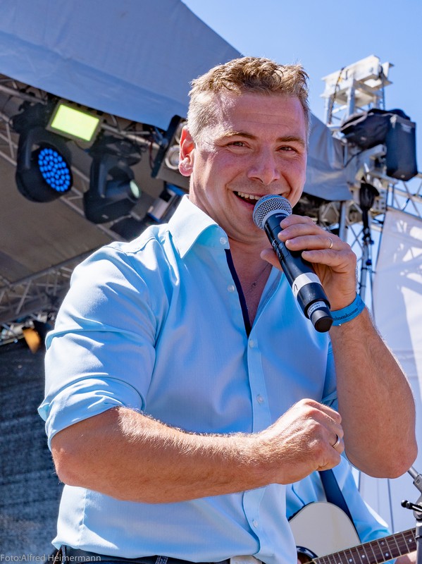 Zum Frühschoppen am Tag nachdem Schlager in Weiss kamen wieder ca.1500 Partyfreunde zum musikalischen Frühschoppen. Ochs am Spieß mit Knödel und Blaukraut war der Hit aus dem Catering von Stadelmann, aber auch gegrillte Ente war im Angebot. 15 Künstler traten in der Zeit von 13-17 Uhr auf, diesmal mit dem Scxhwerpunkt von Alpenrock. Es war ein schöner Tag!
