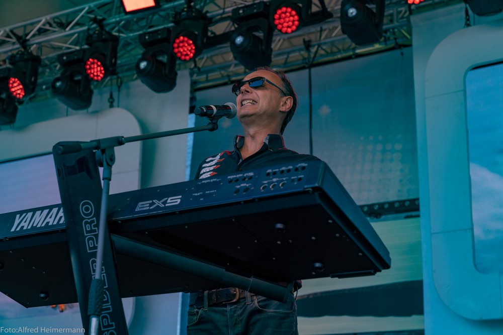 Zum Frühschoppen am Tag nachdem Schlager in Weiss kamen wieder ca.1500 Partyfreunde zum musikalischen Frühschoppen. Ochs am Spieß mit Knödel und Blaukraut war der Hit aus dem Catering von Stadelmann, aber auch gegrillte Ente war im Angebot. 15 Künstler traten in der Zeit von 13-17 Uhr auf, diesmal mit dem Scxhwerpunkt von Alpenrock. Es war ein schöner Tag!