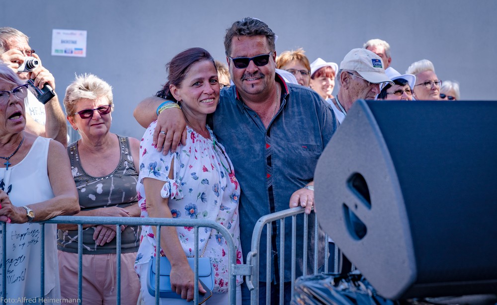 Zum Frühschoppen am Tag nachdem Schlager in Weiss kamen wieder ca.1500 Partyfreunde zum musikalischen Frühschoppen. Ochs am Spieß mit Knödel und Blaukraut war der Hit aus dem Catering von Stadelmann, aber auch gegrillte Ente war im Angebot. 15 Künstler traten in der Zeit von 13-17 Uhr auf, diesmal mit dem Scxhwerpunkt von Alpenrock. Es war ein schöner Tag!