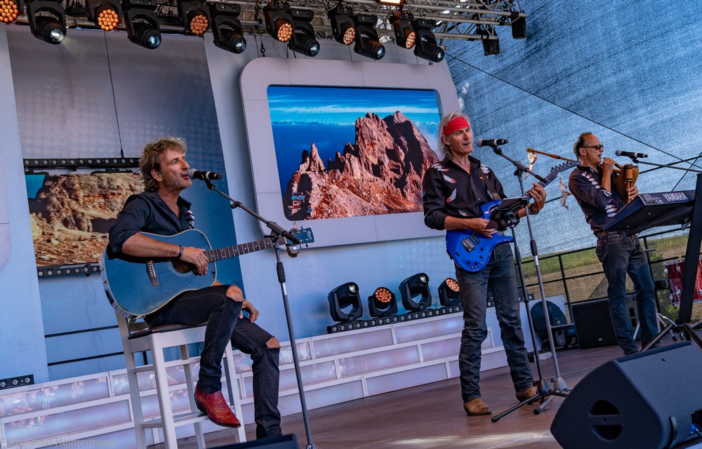 Zum Frühschoppen am Tag nachdem Schlager in Weiss kamen wieder ca.1500 Partyfreunde zum musikalischen Frühschoppen. Ochs am Spieß mit Knödel und Blaukraut war der Hit aus dem Catering von Stadelmann, aber auch gegrillte Ente war im Angebot. 15 Künstler traten in der Zeit von 13-17 Uhr auf, diesmal mit dem Scxhwerpunkt von Alpenrock. Es war ein schöner Tag!