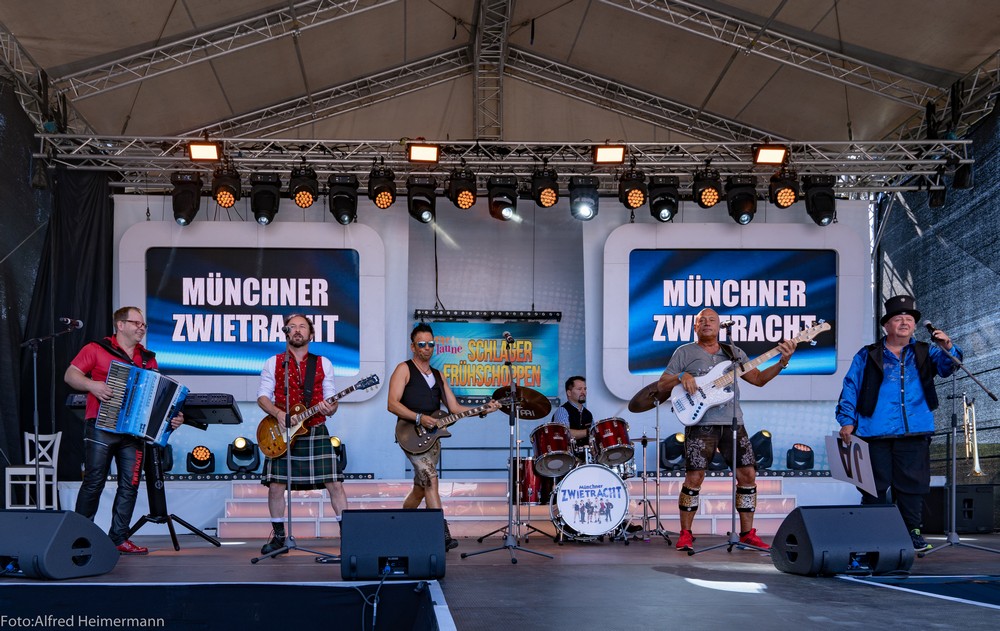 Zum Frühschoppen am Tag nachdem Schlager in Weiss kamen wieder ca.1500 Partyfreunde zum musikalischen Frühschoppen. Ochs am Spieß mit Knödel und Blaukraut war der Hit aus dem Catering von Stadelmann, aber auch gegrillte Ente war im Angebot. 15 Künstler traten in der Zeit von 13-17 Uhr auf, diesmal mit dem Scxhwerpunkt von Alpenrock. Es war ein schöner Tag!