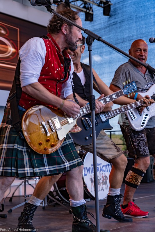 Zum Frühschoppen am Tag nachdem Schlager in Weiss kamen wieder ca.1500 Partyfreunde zum musikalischen Frühschoppen. Ochs am Spieß mit Knödel und Blaukraut war der Hit aus dem Catering von Stadelmann, aber auch gegrillte Ente war im Angebot. 15 Künstler traten in der Zeit von 13-17 Uhr auf, diesmal mit dem Scxhwerpunkt von Alpenrock. Es war ein schöner Tag!