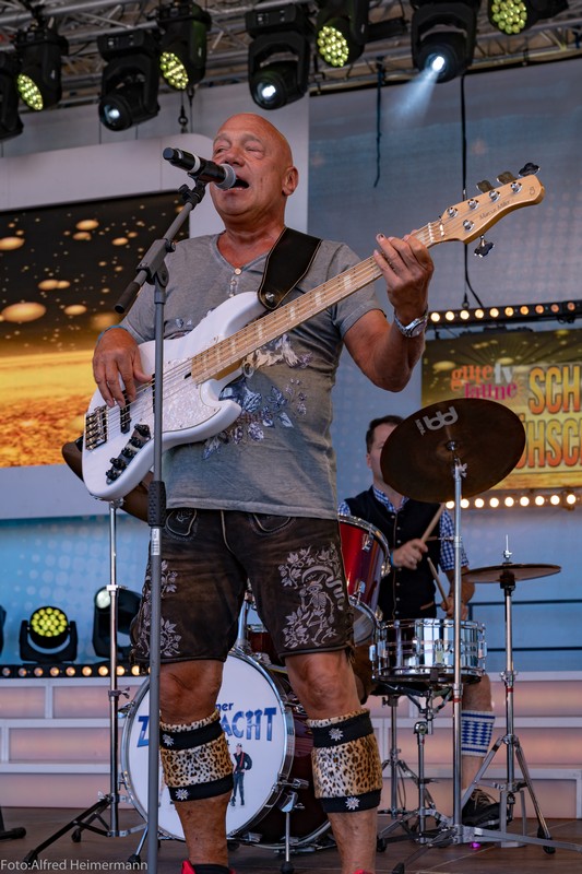 Zum Frühschoppen am Tag nachdem Schlager in Weiss kamen wieder ca.1500 Partyfreunde zum musikalischen Frühschoppen. Ochs am Spieß mit Knödel und Blaukraut war der Hit aus dem Catering von Stadelmann, aber auch gegrillte Ente war im Angebot. 15 Künstler traten in der Zeit von 13-17 Uhr auf, diesmal mit dem Scxhwerpunkt von Alpenrock. Es war ein schöner Tag!