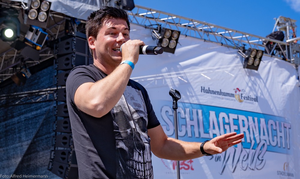 Zum Frühschoppen am Tag nachdem Schlager in Weiss kamen wieder ca.1500 Partyfreunde zum musikalischen Frühschoppen. Ochs am Spieß mit Knödel und Blaukraut war der Hit aus dem Catering von Stadelmann, aber auch gegrillte Ente war im Angebot. 15 Künstler traten in der Zeit von 13-17 Uhr auf, diesmal mit dem Scxhwerpunkt von Alpenrock. Es war ein schöner Tag!