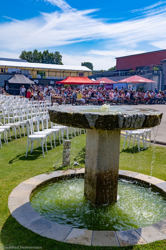 Zum Frühschoppen am Tag nachdem Schlager in Weiss kamen wieder ca.1500 Partyfreunde zum musikalischen Frühschoppen. Ochs am Spieß mit Knödel und Blaukraut war der Hit aus dem Catering von Stadelmann, aber auch gegrillte Ente war im Angebot. 15 Künstler traten in der Zeit von 13-17 Uhr auf, diesmal mit dem Scxhwerpunkt von Alpenrock. Es war ein schöner Tag!