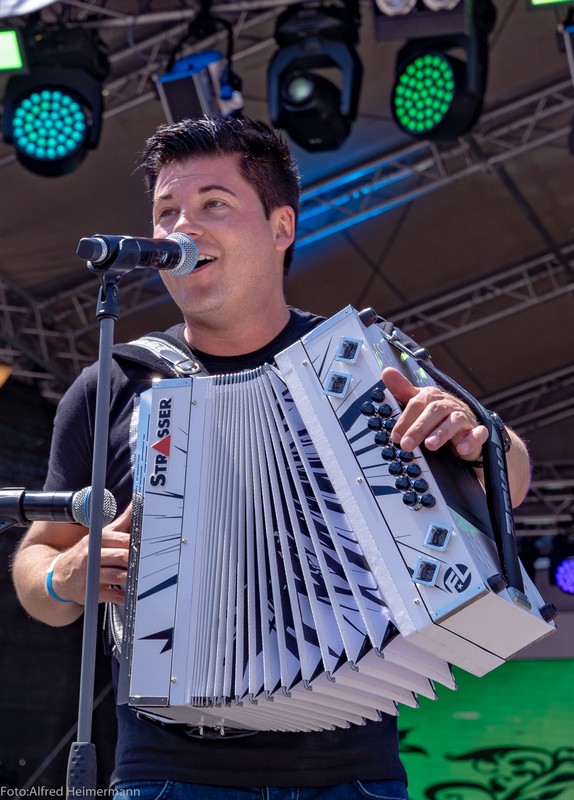 Zum Frühschoppen am Tag nachdem Schlager in Weiss kamen wieder ca.1500 Partyfreunde zum musikalischen Frühschoppen. Ochs am Spieß mit Knödel und Blaukraut war der Hit aus dem Catering von Stadelmann, aber auch gegrillte Ente war im Angebot. 15 Künstler traten in der Zeit von 13-17 Uhr auf, diesmal mit dem Scxhwerpunkt von Alpenrock. Es war ein schöner Tag!