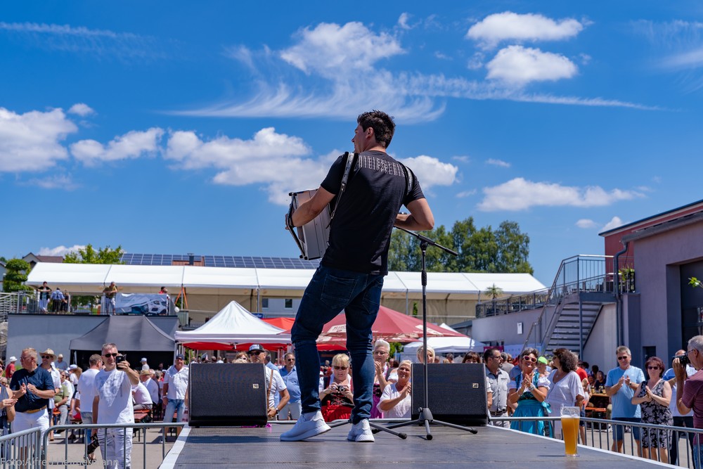 Zum Frühschoppen am Tag nachdem Schlager in Weiss kamen wieder ca.1500 Partyfreunde zum musikalischen Frühschoppen. Ochs am Spieß mit Knödel und Blaukraut war der Hit aus dem Catering von Stadelmann, aber auch gegrillte Ente war im Angebot. 15 Künstler traten in der Zeit von 13-17 Uhr auf, diesmal mit dem Scxhwerpunkt von Alpenrock. Es war ein schöner Tag!