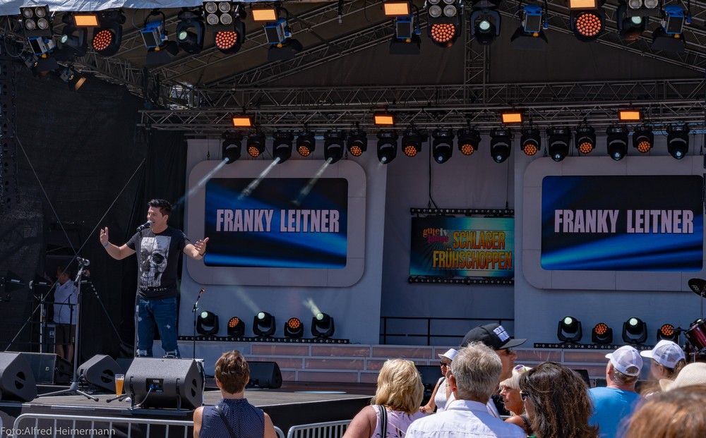 Zum Frühschoppen am Tag nachdem Schlager in Weiss kamen wieder ca.1500 Partyfreunde zum musikalischen Frühschoppen. Ochs am Spieß mit Knödel und Blaukraut war der Hit aus dem Catering von Stadelmann, aber auch gegrillte Ente war im Angebot. 15 Künstler traten in der Zeit von 13-17 Uhr auf, diesmal mit dem Scxhwerpunkt von Alpenrock. Es war ein schöner Tag!