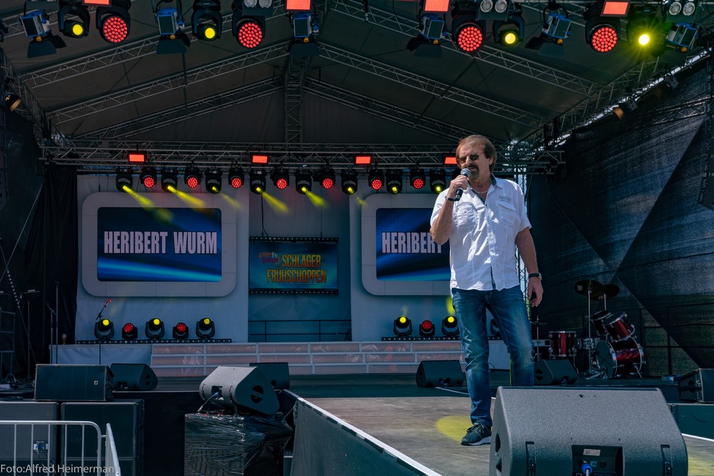 Zum Frühschoppen am Tag nachdem Schlager in Weiss kamen wieder ca.1500 Partyfreunde zum musikalischen Frühschoppen. Ochs am Spieß mit Knödel und Blaukraut war der Hit aus dem Catering von Stadelmann, aber auch gegrillte Ente war im Angebot. 15 Künstler traten in der Zeit von 13-17 Uhr auf, diesmal mit dem Scxhwerpunkt von Alpenrock. Es war ein schöner Tag!