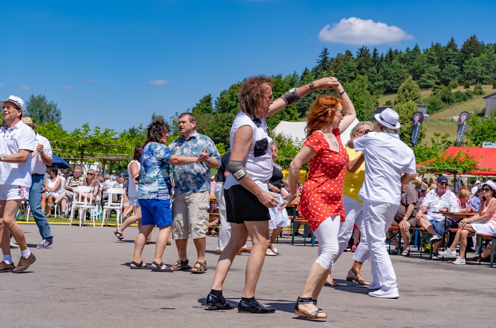 Zum Frühschoppen am Tag nachdem Schlager in Weiss kamen wieder ca.1500 Partyfreunde zum musikalischen Frühschoppen. Ochs am Spieß mit Knödel und Blaukraut war der Hit aus dem Catering von Stadelmann, aber auch gegrillte Ente war im Angebot. 15 Künstler traten in der Zeit von 13-17 Uhr auf, diesmal mit dem Scxhwerpunkt von Alpenrock. Es war ein schöner Tag!